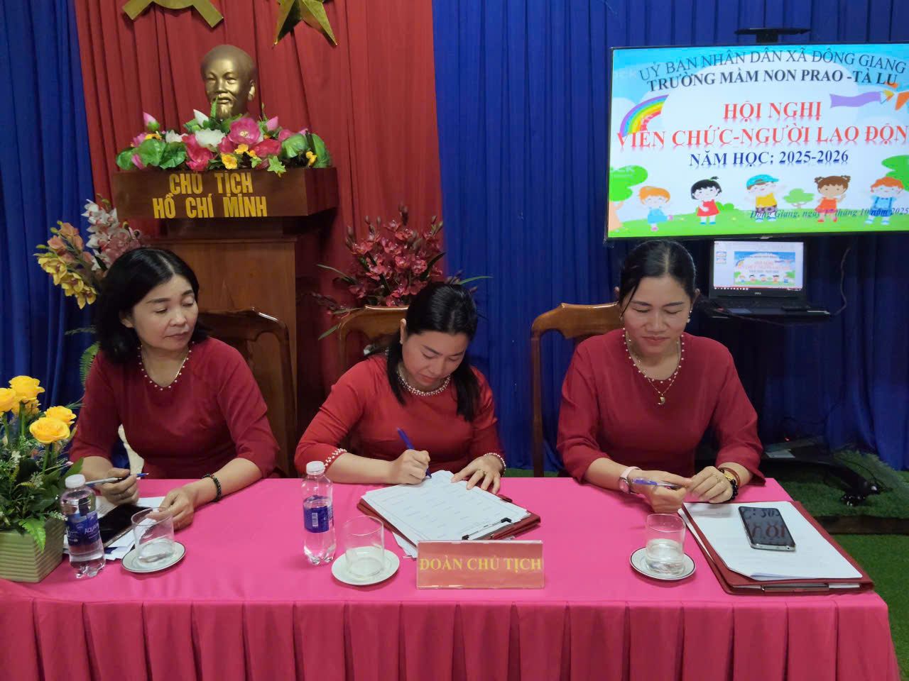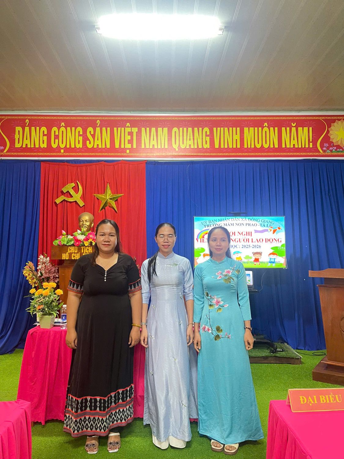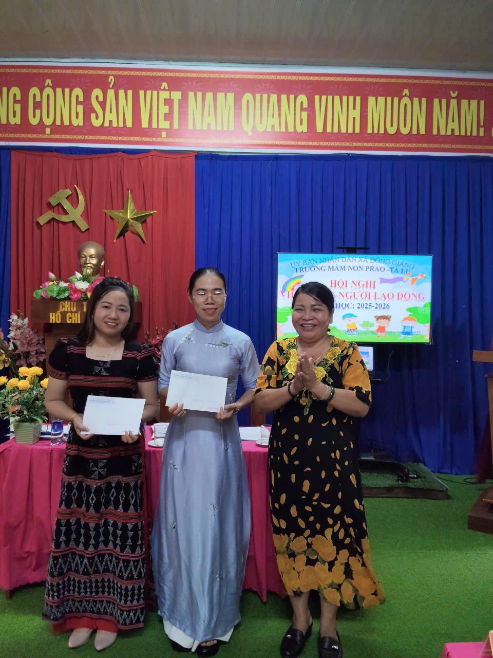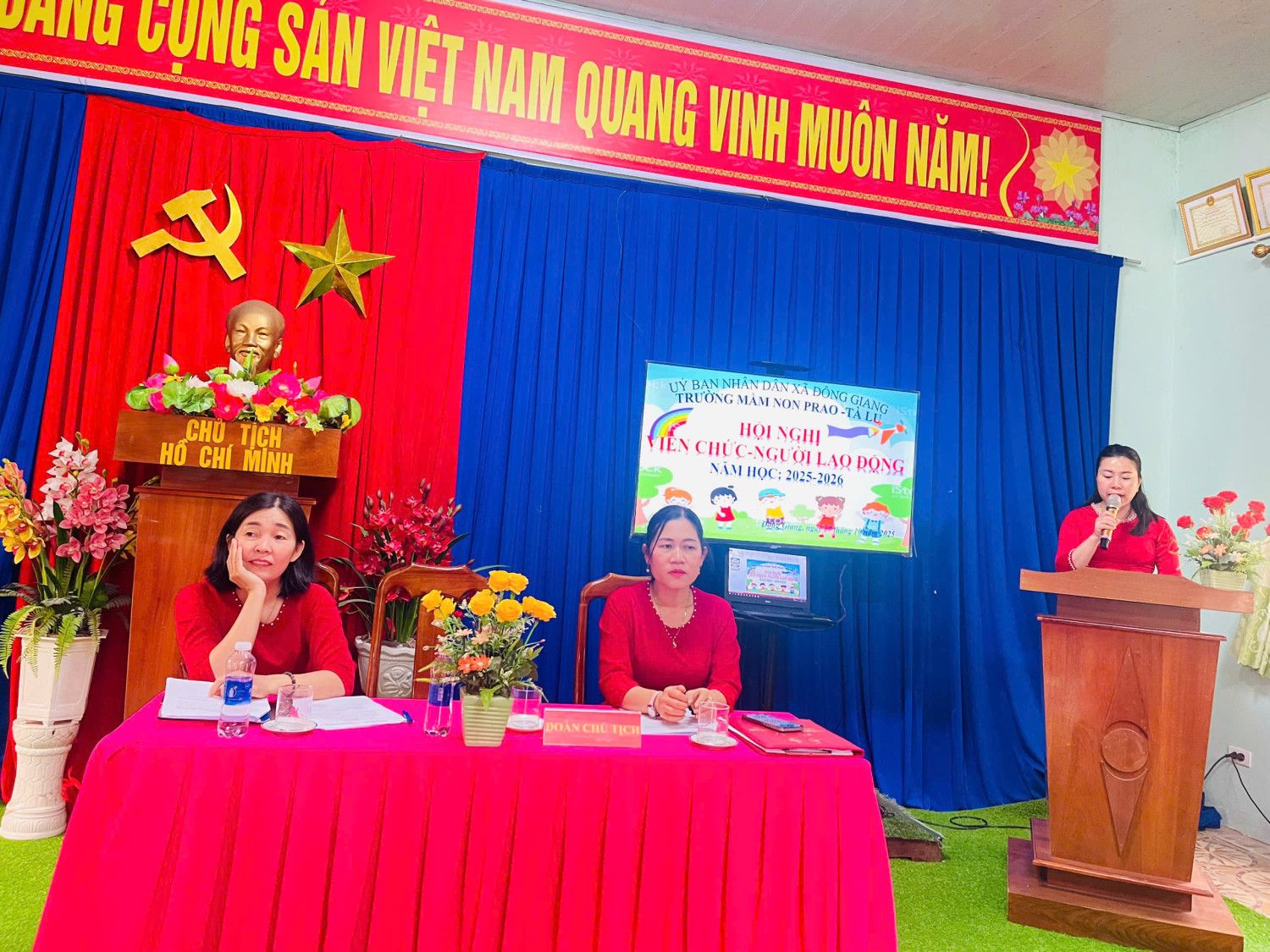 Sáng ngày 17/10/2025 Trường Mầm non Prao-Tà Lu rất vinh dự được chào đón đồng chí Bríu Thị Thanh Nữ- Phó Trưởng phòng VH-XH xã Đông Giang và đồng chí Arất Nhưng - Hội trưởng HCMHS về tham dự Hội nghị viên chức, người lao động, năm học 2025-2026.